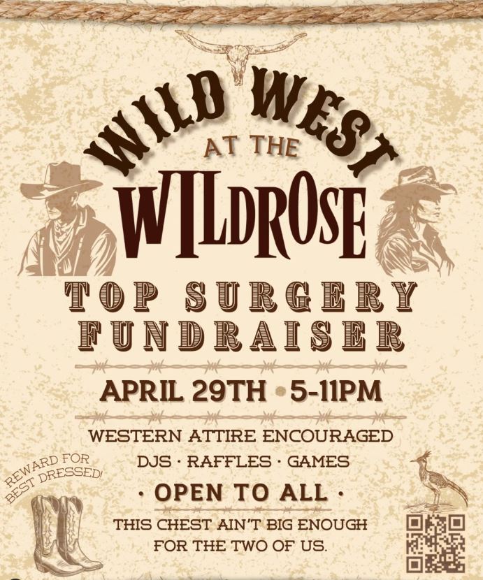 Wild Rose? Check. Western theme? Check. Helping fund a top surgery? CHECK. Come by Wild Rose next Tuesday (4/29) from 5-11 PM for a night of rootin’, tootin’ and bootin’. And by that I mean dancing, DJs, raffles and other activities (like caricatures??). It is a costumed event, but do NOT be that fucking weirdo that wears something offensive. Oh, and if you really turn out a look? The two best dressed of the night will receive a prize- so show up, partner (sorry I’m done). Check out more information on the event post on Wild Rose’s Instagram here. Can’t attend but still want to help out? Feel free to donate to Oli’s top surgery fund here. So get your boots, your fringe, your hats, and whatever other shit constitutes western wear and let’s help get this funded!