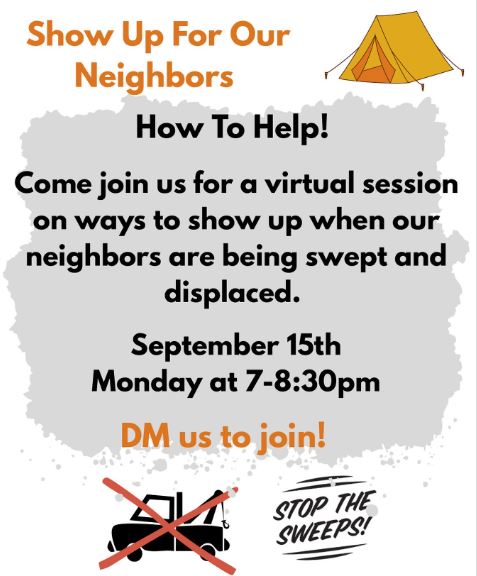 Stop the Sweeps is a Seattle based mutual aid group helping provide necessary services for unhoused folks (as well as advocating for the unhoused community in political spheres). They frequently host virtual events helping introduce folks to the concept of mutual aid (it can be daunting getting started!) and how to get involved (As a note: regardless of our capabilities, schedules, special skills, etc. we all have something valuable to contribute to help.) Tomorrow (9/15) they’re hosting a virtual session from 7:00 – 8:30 PM PST! If you want to know how to help your neighbors experiencing sweeps and homelessness as well as how to plug into existing mutual aid groups, I highly recommend you sign up for this! If interested, they ask that you DM their Instagram page @stopthesweepsseattle for access to join remotely. If you don’t have an Instagram but want to join, please let me know and I can reach out to them (I still have a little hidden account I never use for reasons like this hehe).