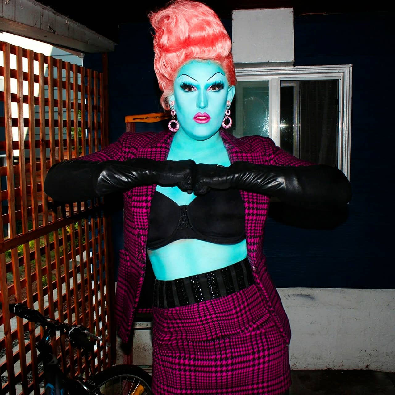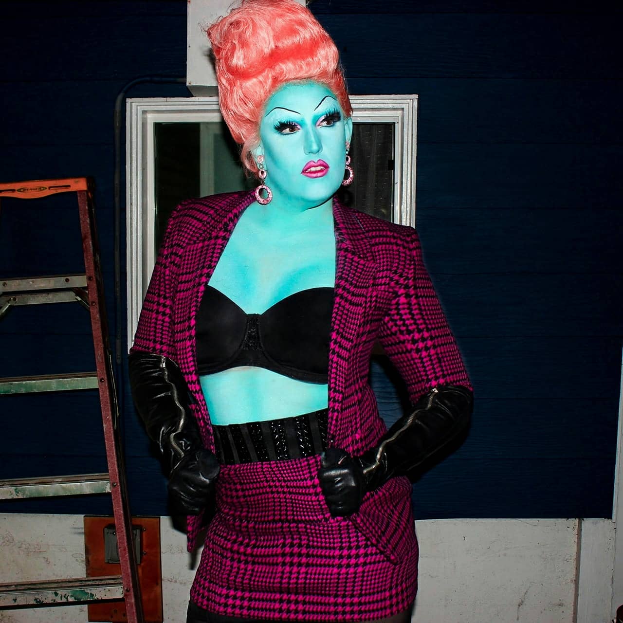 Needless to say, Vel entered some brand new territory with this one. But damn, if that territory wasn’t fun as fuck. And messy (no seriously, there was blue paint EVERYWHERE after this shoot). And LIBERATING. As I spent the next 2 hours furiously scrubbing the blue out of every orifice known to man I just couldn’t wipe a damn stupid grin off my face because it was just so much fun. And let’s be real- if you’re not having fun doing DRAG- aka the art form where you can turn yourself into a slutty 80’s business-Smurf- then what can you have fun doing?? 2020 was a traumatic year for so many reasons, and I think it’s because of that context that when looking back and seeing these moments of creative (and moronic) triumph they hit a little harder. I can’t help but think that these will be the memories that will stick with me for a lifetime.
